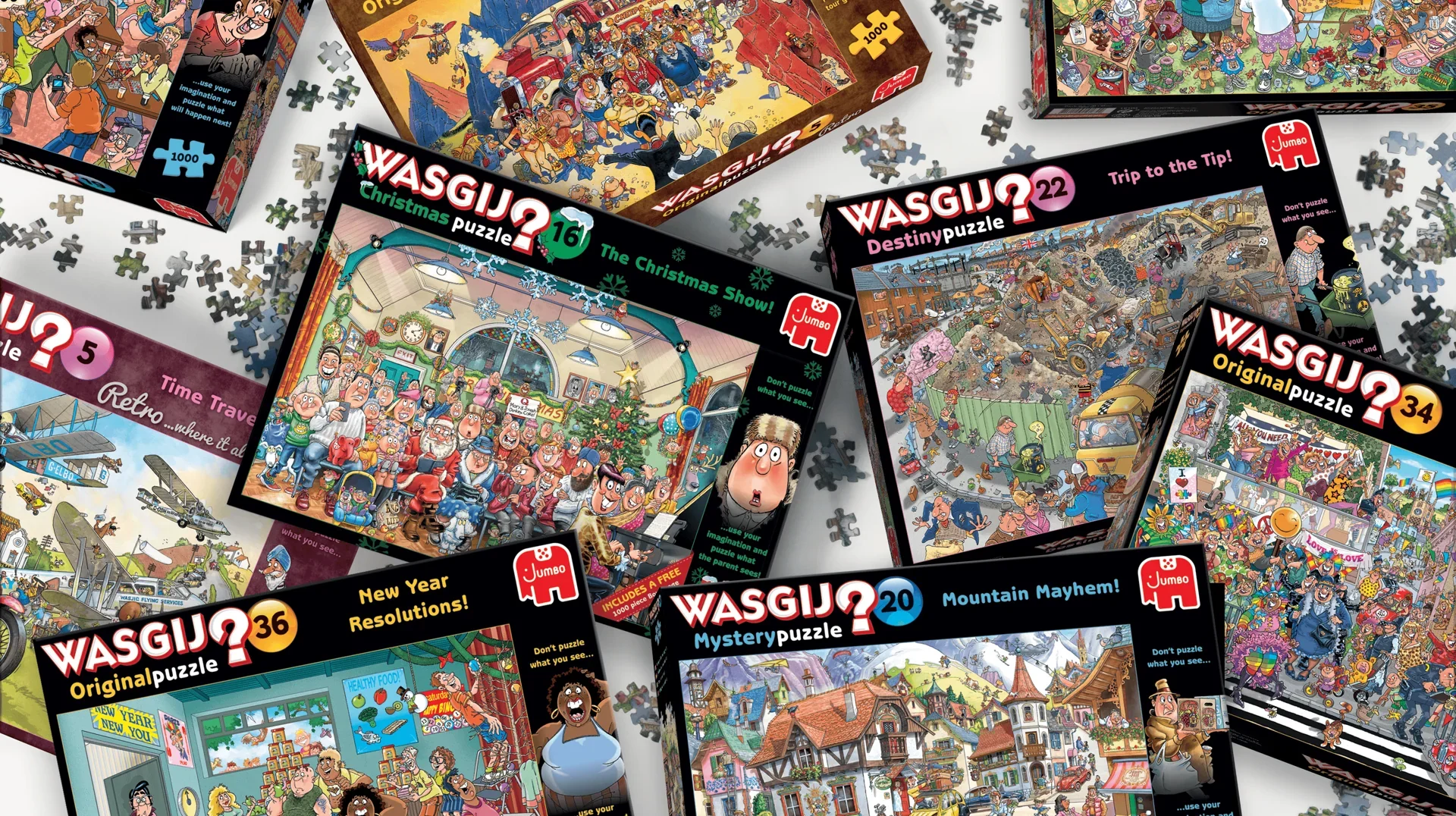 Jumbo Puzzles offers a wide range of high-quality jigsaw puzzles designed for fun, creativity, and hours of engaging play. Known for their vibrant artwork and precision-cut pieces, Jumbo Puzzles include classic collections, family-friendly designs, and specialty lines. Featured artists include Jan van Haasteren, celebrated for his humorous and intricate illustrations, and Wasgij, famous for their unique twist on traditional puzzles where solvers create the “what happens next” scene. Perfect for children, adults, and collectors, Jumbo Puzzles deliver entertainment and display-worthy results.